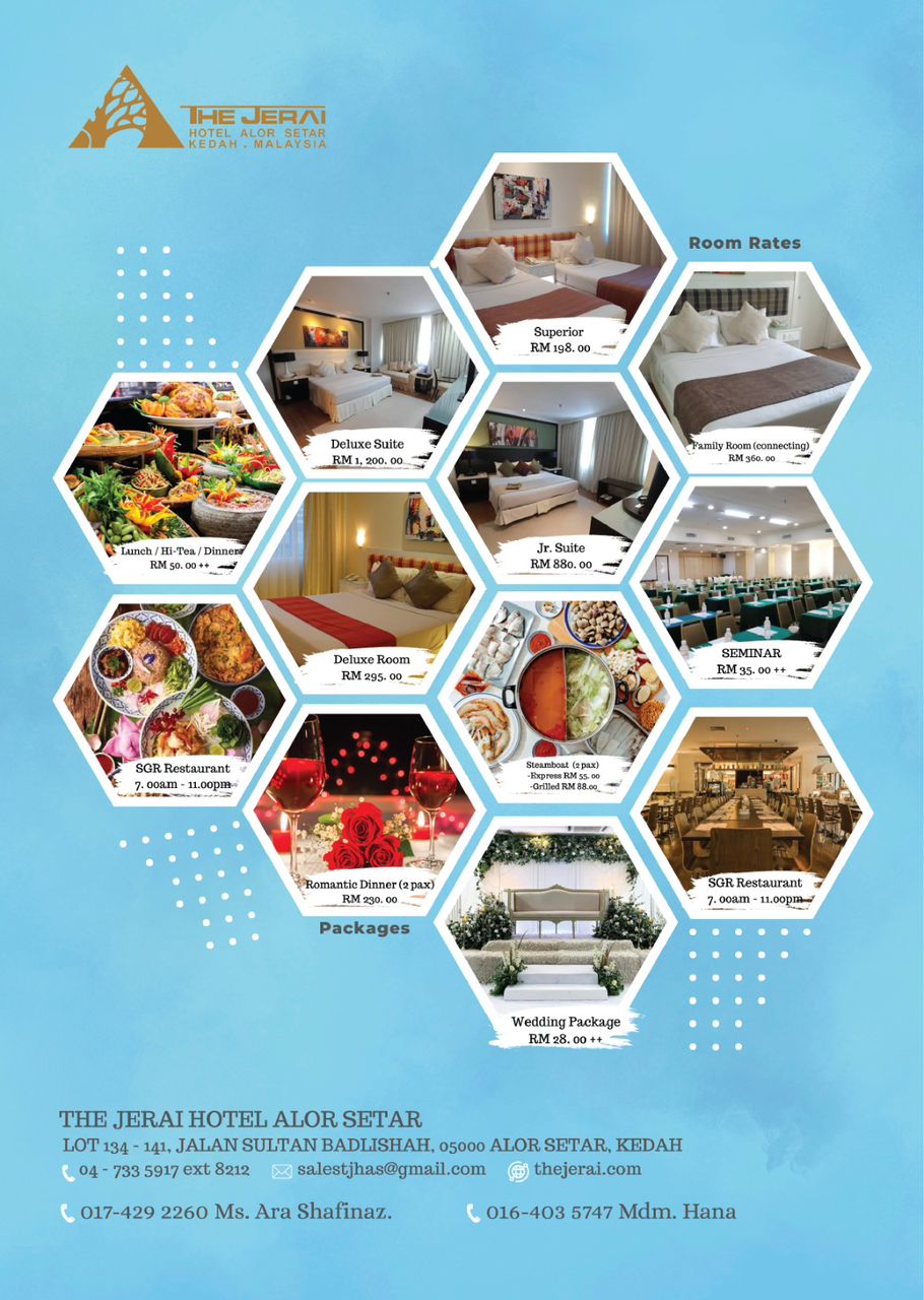 Host your meetings and events at The Jerai Hotel Alor Setar in comfortable surroundings. Our professional event specialists are ready to transform your event into reality.