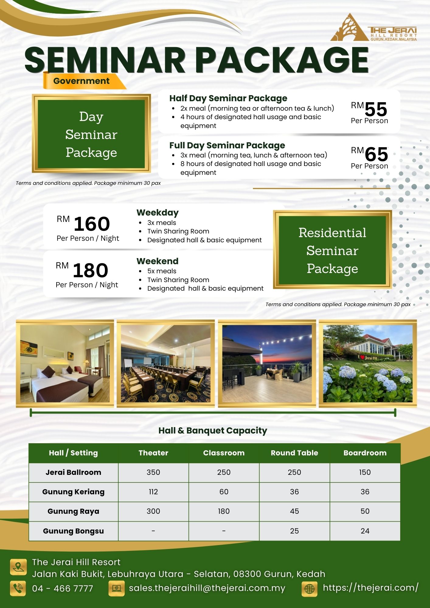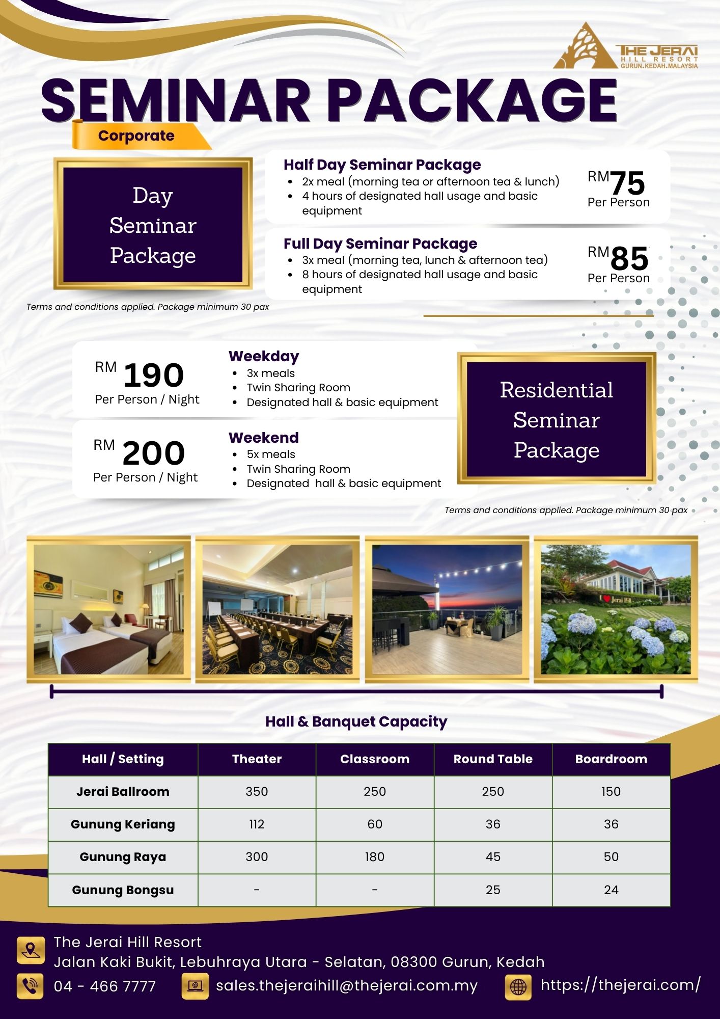 | Jerai Ballroom | 250 | 300 | 200 | 150 |